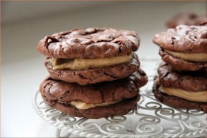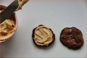 Блюдо готовится без лишних сложностей. Готовится крем для печенья очень просто и быстро. Для приготовления крема нам нужен миксер, сливочное масло комнатной температуры, ванилин, сахарная пудра, жирные сливки и арахисовое масло. Если найти такое масло у Вас не получается, его легко можно заменить на шоколадную пасту. Такой крем идеально подходит для шоколадного печенья. Успехов и Готовый десерт можно подавать к столу.