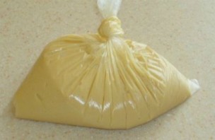Приготовленный крем перекладываем в кондитерский или полиэтиленовый пакет.