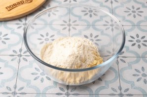 В глубокой миске смешайте кукурузную и пшеничную муку с солью.