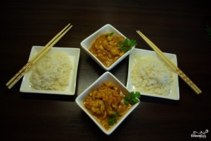 Подаем курицу карри с отваренным рисом.