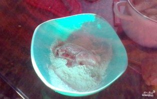 Каждый кусочек курицы обваливаем в муке.