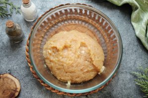 Все посолите, поперчите и хорошо перемешайте. Дайте фаршу постоять 10 минут и тщательно его отбейте.