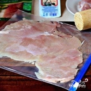 Куриные грудки моем, а затем осторожно отбиваем до толщины ~3мм.