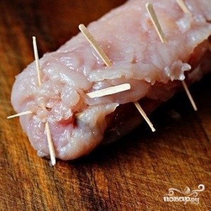 Сворачиваем наш рулет, края закрепляем шпажками.