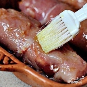 Сбрызгиваем оливковым маслом, посыпаем солью. Выкладываем рулетики в форму для запекания.