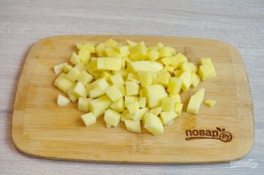 Пока тесто подходит, очистите картофель. Нарежьте его мелким кубиком, иначе более крупные кусочки не пропекутся до конца.