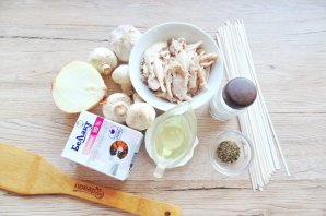 Подготовьте ингредиенты для приготовления лапши с курицей.