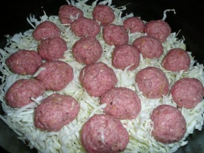 1. В чашу мультиварки влейте масло. Капусту нашинкуйте, лук нарежьте тонкими полукольцами, морковь натрите на терке. Выложите половину нарезанных овощей в чашу мультиварки. Из фарша, яйца, сухарей, другой половины овощей, соли и перца сделайте фарш и слепите шарики. Выложите на овощи. Можно капусту в мультиварку и не выкладывать, но у меня капуста - огромная. Да и вкуснее так получается.