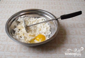 1. Пропускаем через мясорубку или протираем на сито творог. Если творога мало, можно прибегнуть к помощи картофелемялки, она отлично сделает однородной творожную массу. Добавляем сюда сливочное масло (мягкого), яйцо и соль.