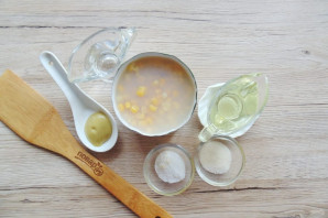 Соус готовится за несколько минут. Домашний майонез всегда пользовался успехом у хозяек. И вариантов его приготовления много. Предлагаю взять за основу рассол от консервированной кукурузы. Совсем не сложно приготовить вегетарианский майонез без яиц, воспользовавшись таким рассолом. По вкусу этот майонез ничем не отличается от обычного, хотя не совсем такой густой консистенции как промышленный. Но после проведенных пару часов в холодильнике, вегетарианский майонез по густоте начинает приближаться к обычному. Он отлично подойдет всем постящимся для заправки салатов и добавки в другие блюда Соус готов. Храните в холодильнике и подавайте к блюдам.