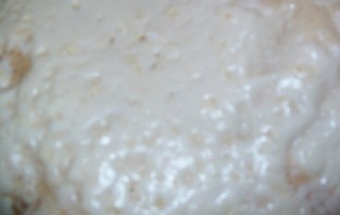 В подошедшую опару вливаем только что приготовленную смесь.