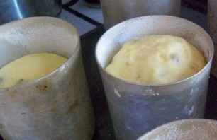 Поднявшееся тесто раскладываем по формам, смазанным маслом. Когда тесто еще немного поднимется, ставим его в духовку и выпекаем до готовности (проверять зубочисткой). Температура 200 градусов.