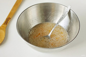 В глубокой миске соедините яйцо, воду и растительное масло. Добавьте 2 ч.л. соли и все немного взбейте венчиком или вилкой.