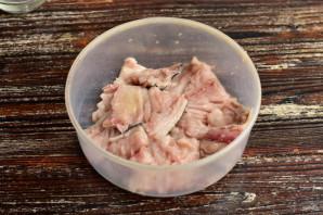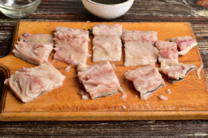 Скумбрию очистите, удалите голову, хвост, хребет. Нарежьте рыбу на куски.