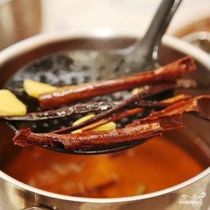 Из загустевшего сиропа аккуратно вынимаем все специи.