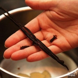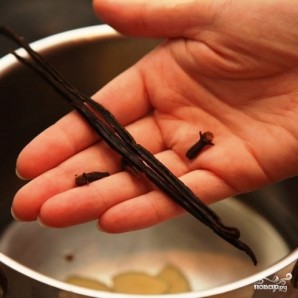 Туда же кладем разрезанную пополам палочку ванили, гвоздику.