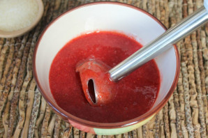 Клубнику чистим, засыпаем сахаром и перемалываем блендером.
