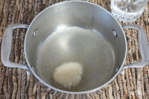 В кастрюлю наливаем воду и добавляем желатин. Непрерывно помешивая, нагреваем на малом огне.