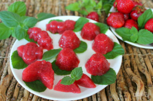 Когда мармелад застынет, извлекаем его из формочек и перекладываем на плоскую тарелку. Дополнить мармелад можно листочками мяты.