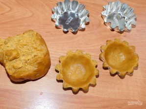 Из готового теста сформируйте корзиночки, с помощью специальных формочек и отправьте в духовку, разогретую до 200 градусов на 10 минут. Готовые корзиночки остудите.