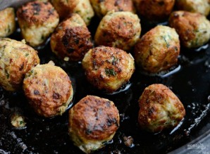 4. Потом в большой сковороде (лучше чугунной) разогрейте масло. Обжарьте в нём митболы до золотистой корочки пару минут.