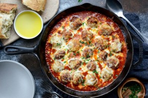5. После этого освободите сковороду. Влейте в неё соус, а затем вновь выложите мясные шарики.