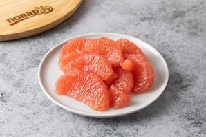 Грейпфрут очистите от кожуры. Разделите на дольки и очистите их от плёнок.