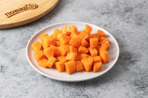 Морковь помойте, очистите и нарежьте на маленькие ломтики.