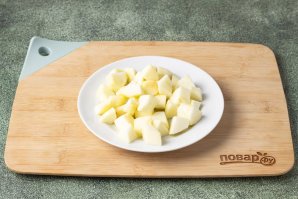 Яблоко разрежьте, удалите сердцевину и порежьте на маленькие кубики.
