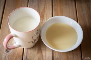 Жирные сливки залейте в просторную миску и взбейте миксером до кремообразного состояния.