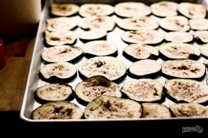 5. Выложите баклажаны на противень в один слой и отправьте в разогретый до 200 градусов духовой шкаф на 15-25 минут.