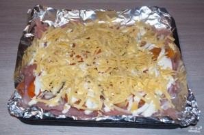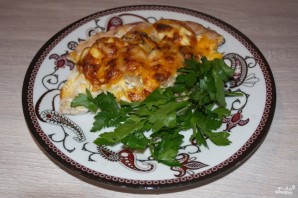 Запекайте в духовке при 200 градусах до образования румянца на сыре. Мясо достигнет готовности через 30-45 минут.