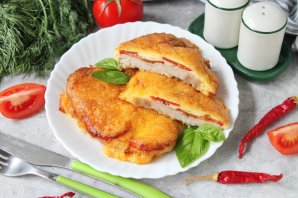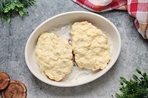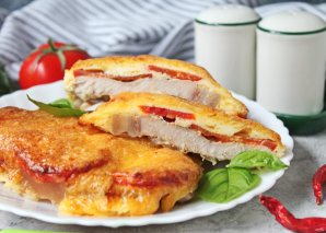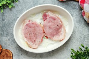 Свинину разрежьте на две части, отбейте их с двух сторон. Мясо посолите и поперчите.
