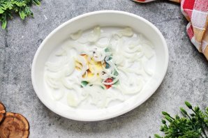 Репчатый лук порежьте и выложите на дно формы смазанной растительным маслом.