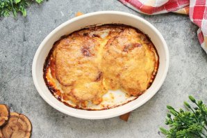 Форму с мясом по-французски поставьте в горячую духовку и запекайте при температуре 180 градусов в течение 40-55 минут до готовности. Время будет зависеть от толщины куска мяса и работы духовки.