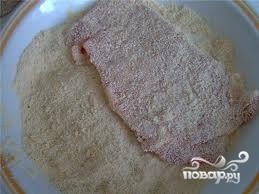6. Затем каждый кусочек окунуть во взбитое яйцо и панировочные сухари.