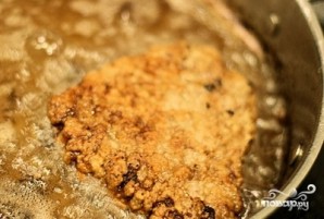 7. На сковороде растопить сливочное масло. Аккуратно отправить туда мясо и жарить с двух сторон до золотистой корочки. Мясо по-швейцарски в домашних условиях прекрасно сочетается с овощами и любыми гарнирами.