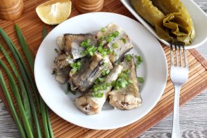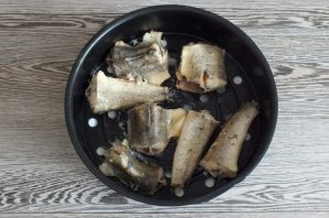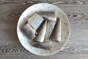 Рыбу вымойте, почистите от чешуи, удалите внутренности. Нарежьте на порционные куски. Выложите в чашу или на тарелку. Залейте лимонным соком с маслом. Оставьте на 15 минут.