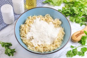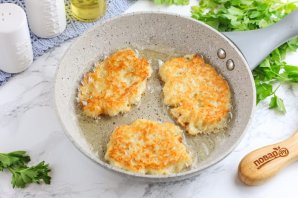 Прогрейте растительное масло в сковороде и выложите столовой ложкой массу в масло. Обжарьте с одной стороны 1-2 минуты.