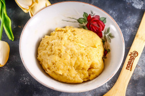 Всыпьте пшеничную муку и замесите тугое песочное тесто. Накройте его пленкой и поместите в холодильник на 20 минут.
