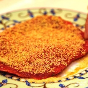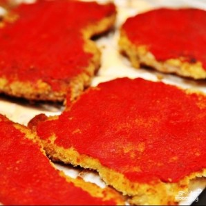 Далее необходимо сверху смазать отбивные небольшим слоем томатной пасты.