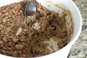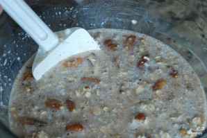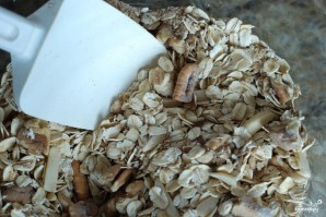 Смешиваем овсянку, коричневый сахар, нарубленные орехи, соль и специи (гвоздика, мускат, имбирь, корица).