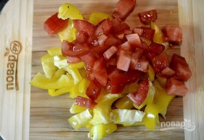 В сковороду добавьте лук и чеснок, обжарьте 5 минут. Затем добавьте остальные овощи, жарьте минут 7.
