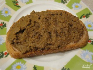 Добавляем соль и специи по вкусу. Обязательно кладем кусочек масла. Перемешиваем. Паштет готов! Мажем его на хлебушек и наслаждаемся!