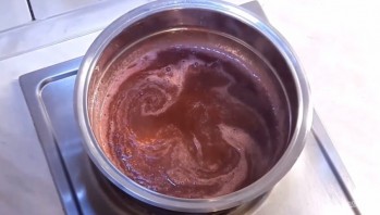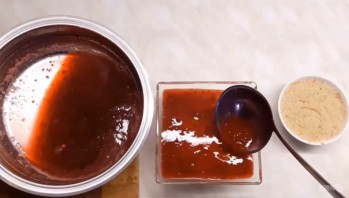 5. Приготовьте желе: перебейте клюкву блендером, добавьте сахар, бальзамический уксус и поставьте на огонь, чтобы клюква закипела, а сахар растворился. Периодически помешивайте желе. Когда клюква немного остынет, добавьте желатин и тщательно размешайте.