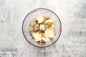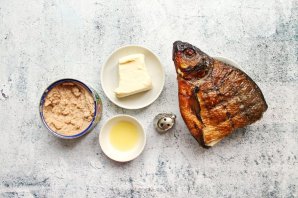 У копченой рыбы, у меня лещ, удалите кожу, отделите мясо и тщательно выберите все, даже мелкие косточки. Выложите мясо рыбы в чашу блендера и добавьте мягкое масло.