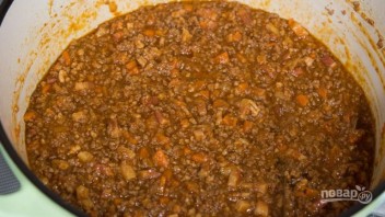 7. Добавьте томатную пасту и готовьте еще 30 минут постоянно помешивая для исключения подгорания.
