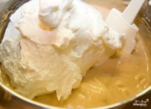 В яблочное пюре добавляем мед по вкусу. Можно положить сахар, либо вообще не класть ничего сладкого, сохранив тем самым естественный яблочный вкус. Взбиваем пюре в блендере до тех пор, пока оно не посветлеет. Затем отделяем желтки от белков. Взбиваем белки со щепоткой соли до образования густой стойкой пены. Перекладываем белок в яблочное пюре, не забыв при этом отложить несколько столовых ложек для промазывания пастилы.