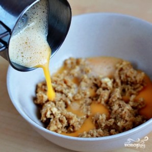 Добавляем в смесь взбитое яйцо и ванилин. Перемешиваем.