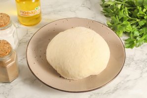 Добавьте частями остальную муку, не забывая оставить немного для раскатки теста. Замесите плотное упругое тесто и накройте его пищевой пленкой, полотенцем. Оставьте при комнатной температуре на 15-20 минут для активации клейковины.
